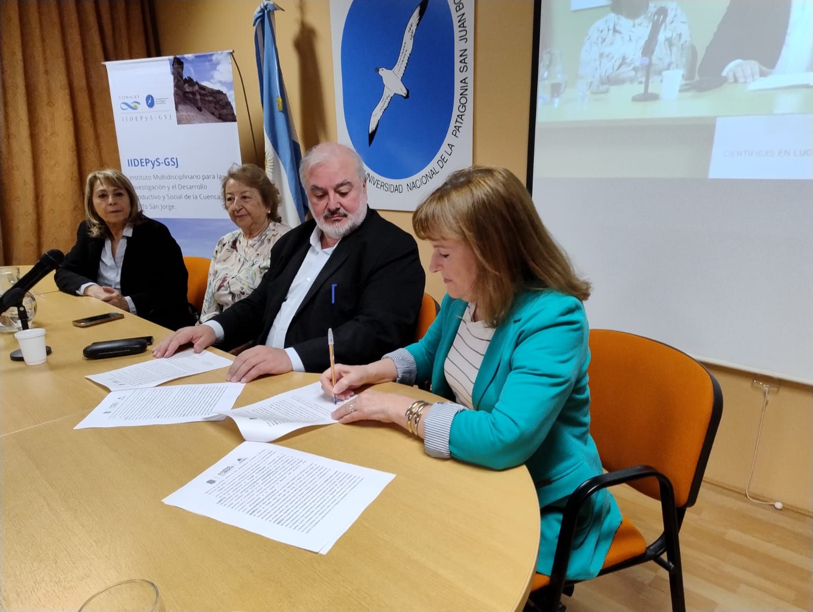A la firma formalizada en instalaciones de la Universidad Nacional de la Patagonia San Juan Bosco, en la ciudad petrolera, asistieron la administradora del Puerto de Comodoro Rivadavia, Digna Hernando; el presidente del Ente Comodoro Conocimiento, Rubén Zárate; la directora del Instituto Multidisciplinario para la investigación y el Desarrollo Productivo y Social de la Cuenca del Golfo San Jorge (Consejo Nacional de Investigaciones Científicas y Técnicas) Mirtha Lewis y la rectora de la Universidad Nacional de la Patagonia San Juan Bosco, Lidia Blanco.