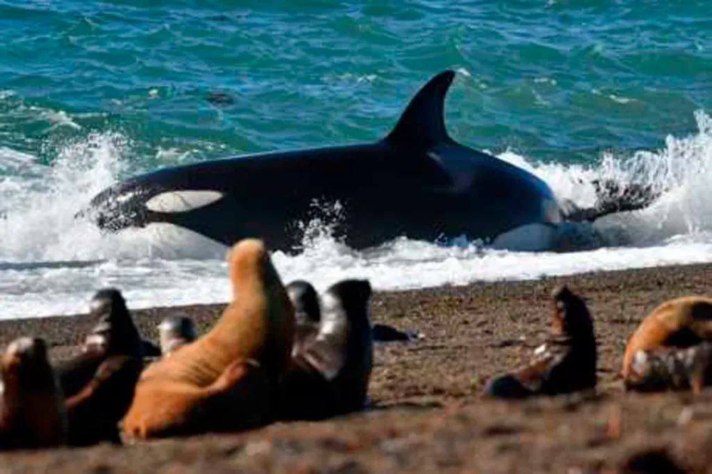Desde un mirador, esta exhibición de audacia de las orcas no deja a nadie indiferente. Es una técnica única en el mundo, observada por primera vez en 1974 y desarrollada por ellas en el Área Natural Protegida Península Valdés, pasando de generación en generación, agrupándose en familias bajo un matriarcado, en donde los jóvenes reciben una prolongada instrucción hasta que empiecen a practicarlo, a la espera de cachorros de otras especies con poca experiencia en el mar.